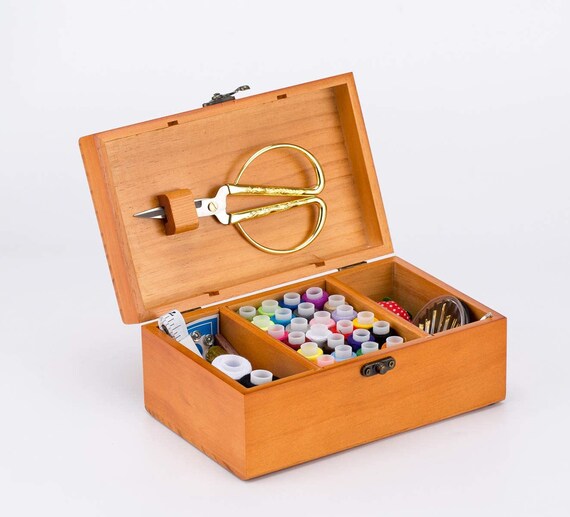 Wooden Sewing Basket With Sewing Kit Accessories Sewing Box Etsy Canada